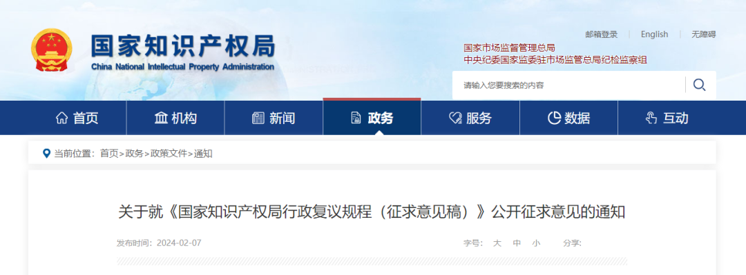 国知局:关于《国家知识产权局行政复议规程》修改征求意见